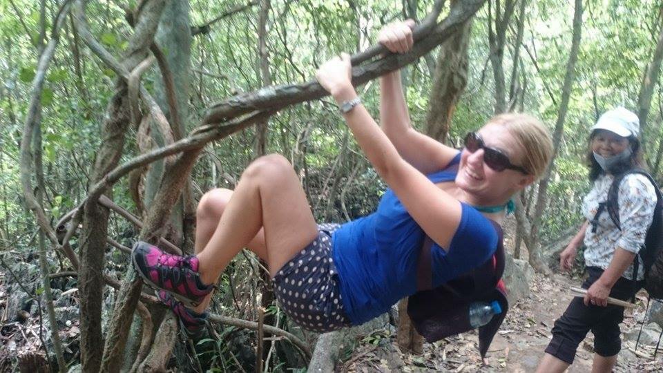We docked at Cat Ba island and as we were leaving the boat to stay the night we gathered our belongings and headed to our guesthouse for lunch and then an afternoon ‘stroll’ up a mountain hill. We went with a lovely lady who must have been in her late 50s. She obviously does this every day as she was like a mountain goat up and down the hill whilst we were all struggling with it. Cat Ba had some really cheeky monkeys who were opening peoples bags and helping themselves to whatever they find. Along the way they had discovered how to open bottles and drink from them. That evening we went for dinner with another couple who were also spending a night on the island and had a giggle over some laughing gas which was openly available to consume.